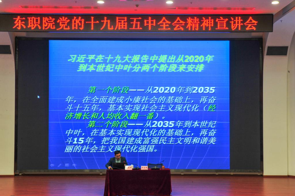 为深入学习贯彻党的十九届五中全会精神,12月16日下午,我校在培训楼举行党的十九届五中全会精神宣讲会。我校校领导、中层干部、教职工参加宣讲会。党委副书记、校长贺定修主持宣讲会。