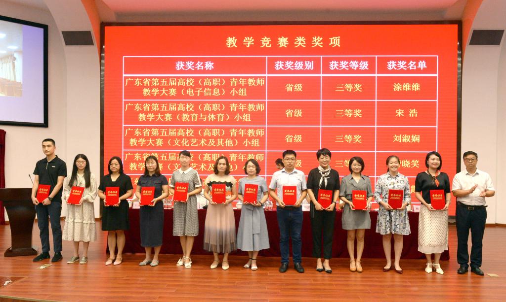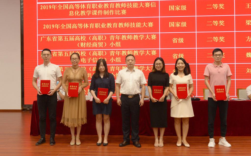 庄严的国歌结束后,党委委员、副校长杨云奇宣读了《东莞职业技术学院关于表彰2019-2020学年获奖教师的决定》,现场表彰名单囊括我校在疫情防控期间做出贡献的“防控先进集体”、“防控先进个人”以及国家级、省级、市级、校级的各类奖项,并由校领导对获奖个人以及团体依次颁奖。过去一年,在各类教学、科研、管理等活动中涌现出一大批先进集体和先进个人。会议现场,全体教职工以热烈的掌声衷心祝贺获奖的个人及集体。