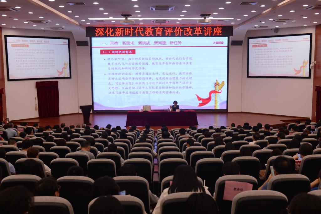 为推进深化新时代教育评价改革工作,切实将思想和行动统一到党中央关于深化新时代教育评价改革的决策部署上来,5月19日下午,我校在培训楼报告厅举办深化新时代教育评价改革专题讲座,讲座由党委委员、教务处处长王志明主持。校领导、中层干部以及全体教职工认真聆听了专题讲座。