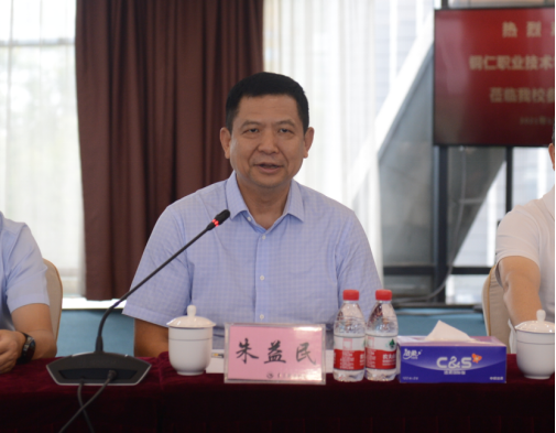 我校党委书记朱益民向来宾介绍了我校基本情况和新成果。他表示,铜仁职业技术学院是贵州职业教育的龙头,也是我校学习的榜样。期待双方在资源共享、产教融合、科研发展和师资培养等各方面加强合作,优势互补、共同发展。