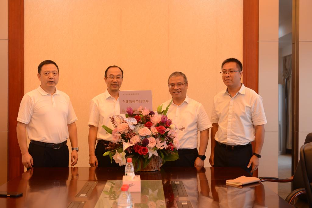 9月10日下午,松山湖党工委副书记、管委会副主席黄晨光一行,代表松山湖管委会向我校全体教师送来节日慰问。我校党委副书记、校长贺定修,党委委员、副校长杨云奇出席慰问仪式。