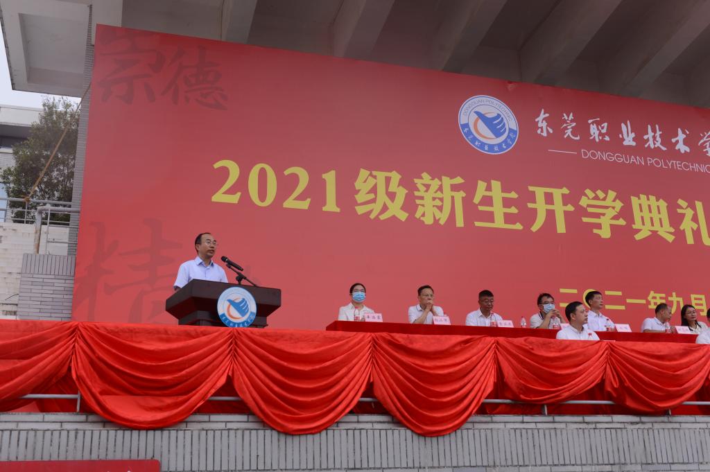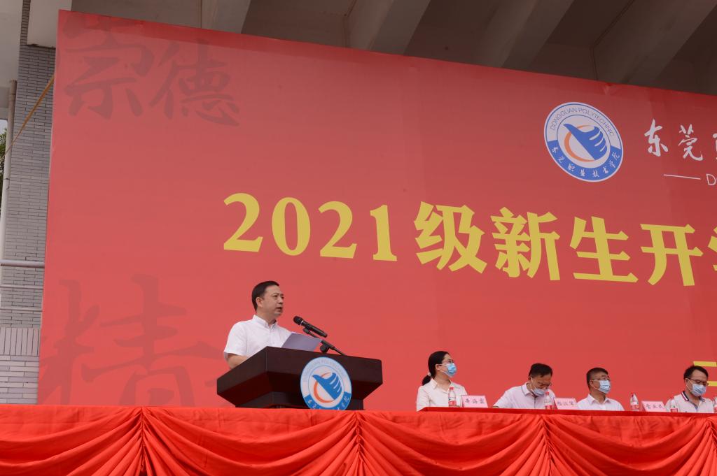 校党委副书记、校长贺定修致辞。他围绕学校的八字校训,对新生提出期望:争做爱国爱校的“崇德者”,德技并修,心怀家国,不断提升道德修养和精神境界;争做躬耕实践的“笃行者”,树立梦想从学习开始,事业靠本领成就的理念,不断磨砺自我,增长技能才干;争做追求卓越的“精技者”,打造一技之长、练就过硬本领,用精湛技艺增添青春搏击的能量,以真才实学服务地方经济社会发展;争做奋发有为的“创新者”,青春拥抱挑战,科创与国同行,积极参与创新创业训练,勇于担当、善于学习、敢于突破!