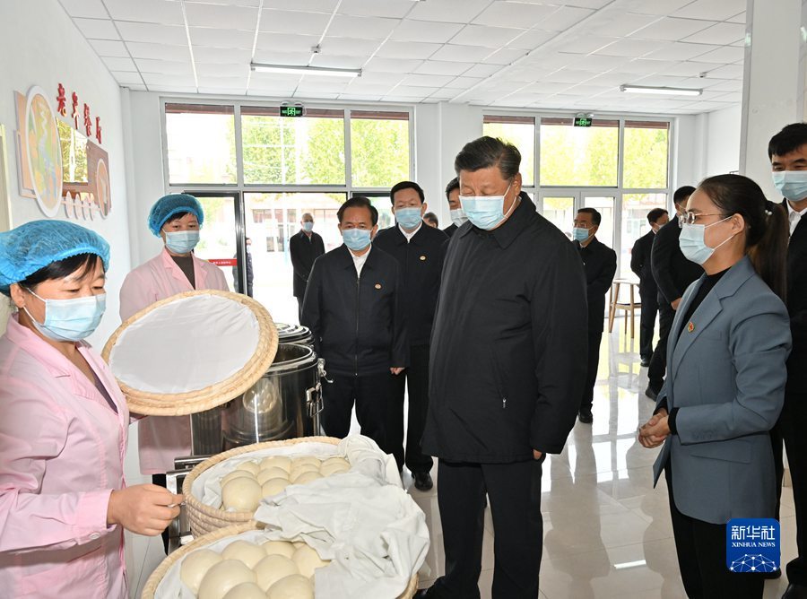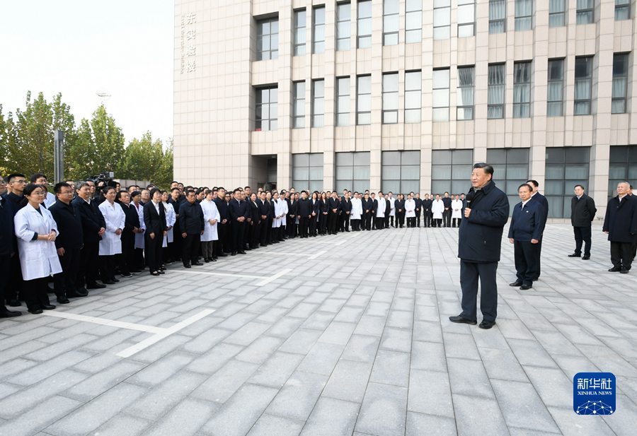 10月22日下午,中共中央总书记、国家主席、中央军委主席习近平在山东省济南市主持召开深入推动黄河流域生态保护和高质量发展座谈会并发表重要讲话。这是座谈会前,习近平21日上午在东营市垦利区董集镇杨庙社区考察。 新华社记者 谢环驰 摄
