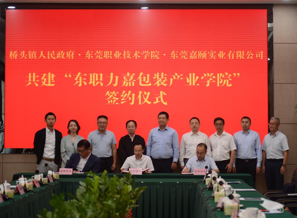 4月29日上午,桥头镇人民政府、东莞职业技术学院、东莞力嘉国际集团三方,共同签约共建“东职力嘉包装产业学院”,推动包装相关产业高质量发展。