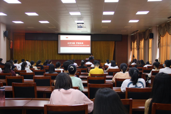 9月22日下午,我校卫生健康学院组织开展了习近平总书记在庆祝中国共产党成立100周年大会上的重要讲话精神专题宣讲。宣讲主题为“以史为鉴 开创未来”,我校马克思主义学院老师王伟主讲,学院专职副书记王辰主持。本次专题宣讲采取线下线上相结合的形式同步进行,做到学院师生全覆盖。